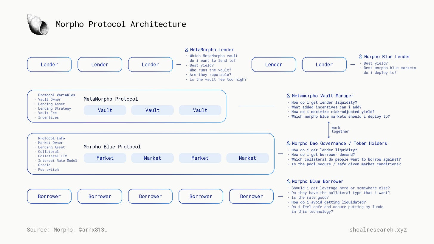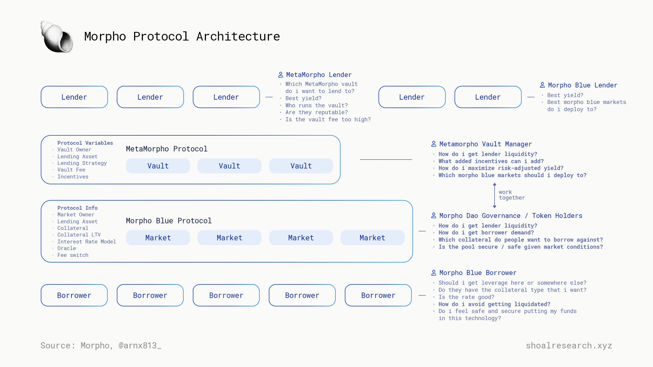 Below is an updated visual of the complete Morpho protocol architecture , annotating the actors and their objectives / thought process