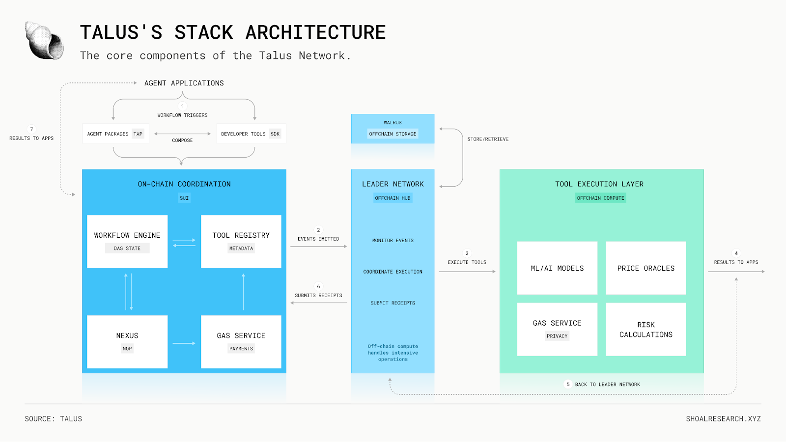 At Shoal, we believe autonomous agents could reshape economic activity at scale. What matters is the infrastructure that supports them. Adoption will determine its ultimate role, but with verifiable workflows, native asset control, and modular coordination primitives, Talus’s architecture is designed in a way that gives it a credible path toward becoming foundational rails for the agentic economy.