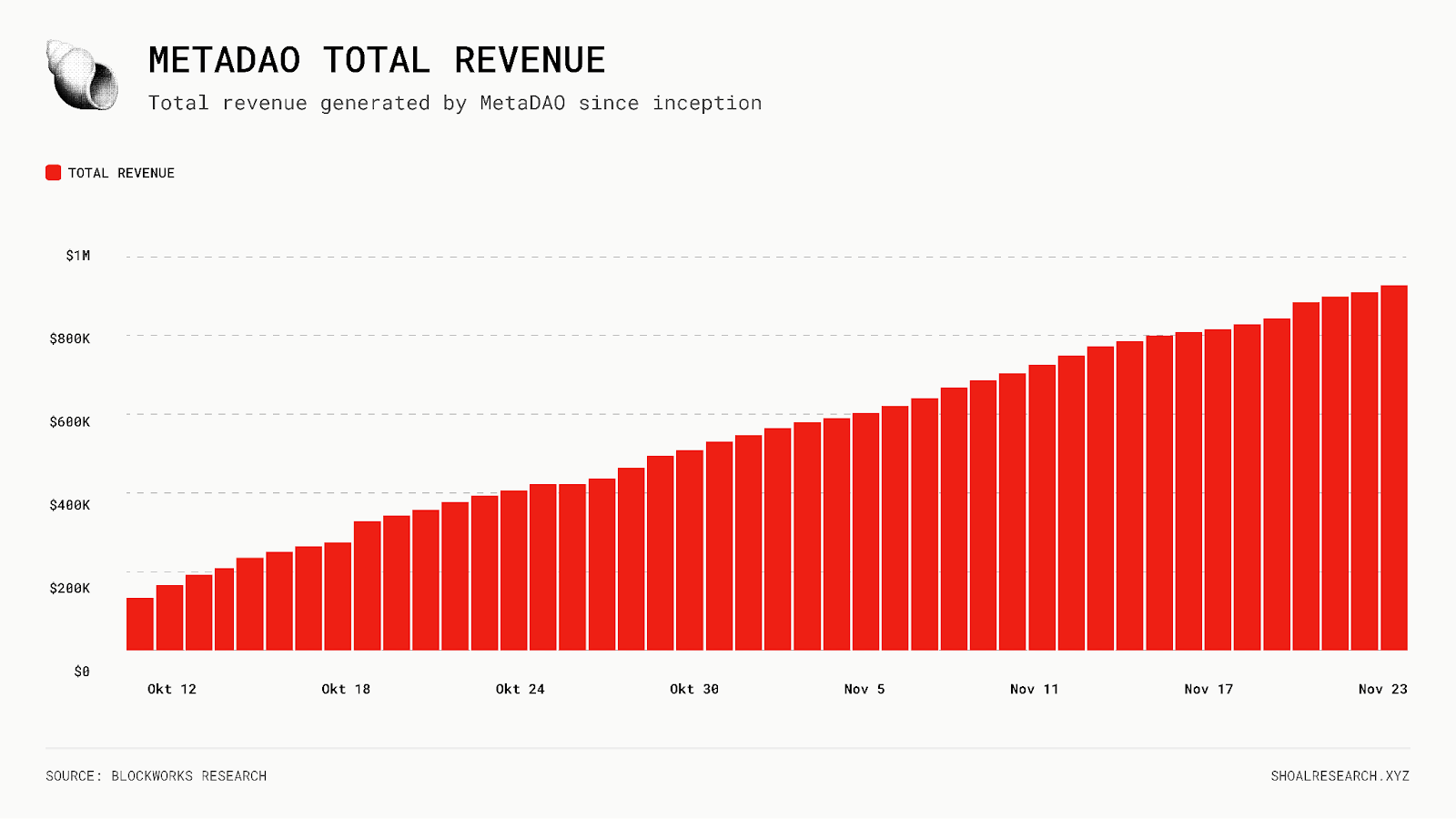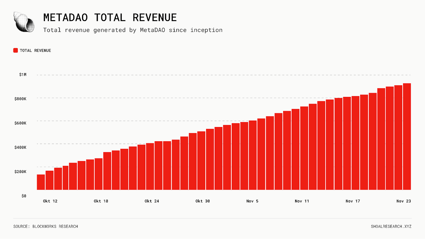 Together, these components make META directly tied to the success of ownership coins, and therefore to the success of the MetaDAO launchpad itself. And they are already off to a strong start, as the platform has already generated over $1M in revenue to date.