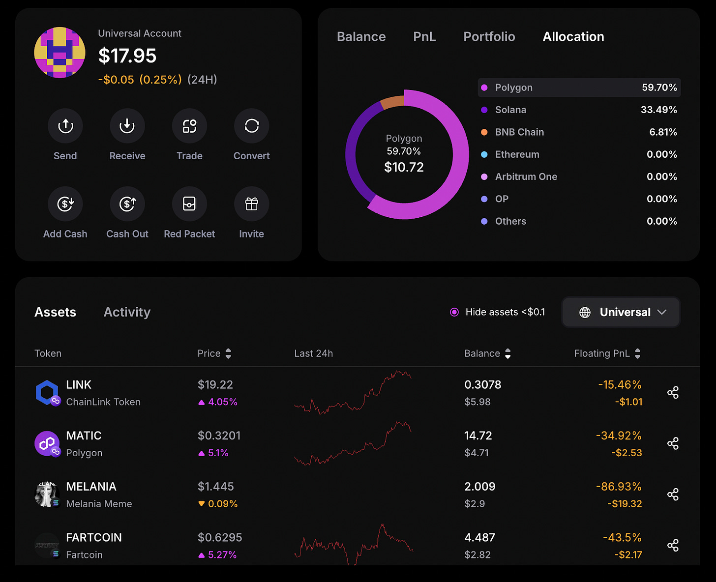 As you can see, despite holding funds across multiple chains, the magic of UAs is that they appear as a single combined balance. When making a transaction, the system automatically aggregates the value from all chains into a single transaction—eliminating the need to manually bridge assets or manage gas fees.