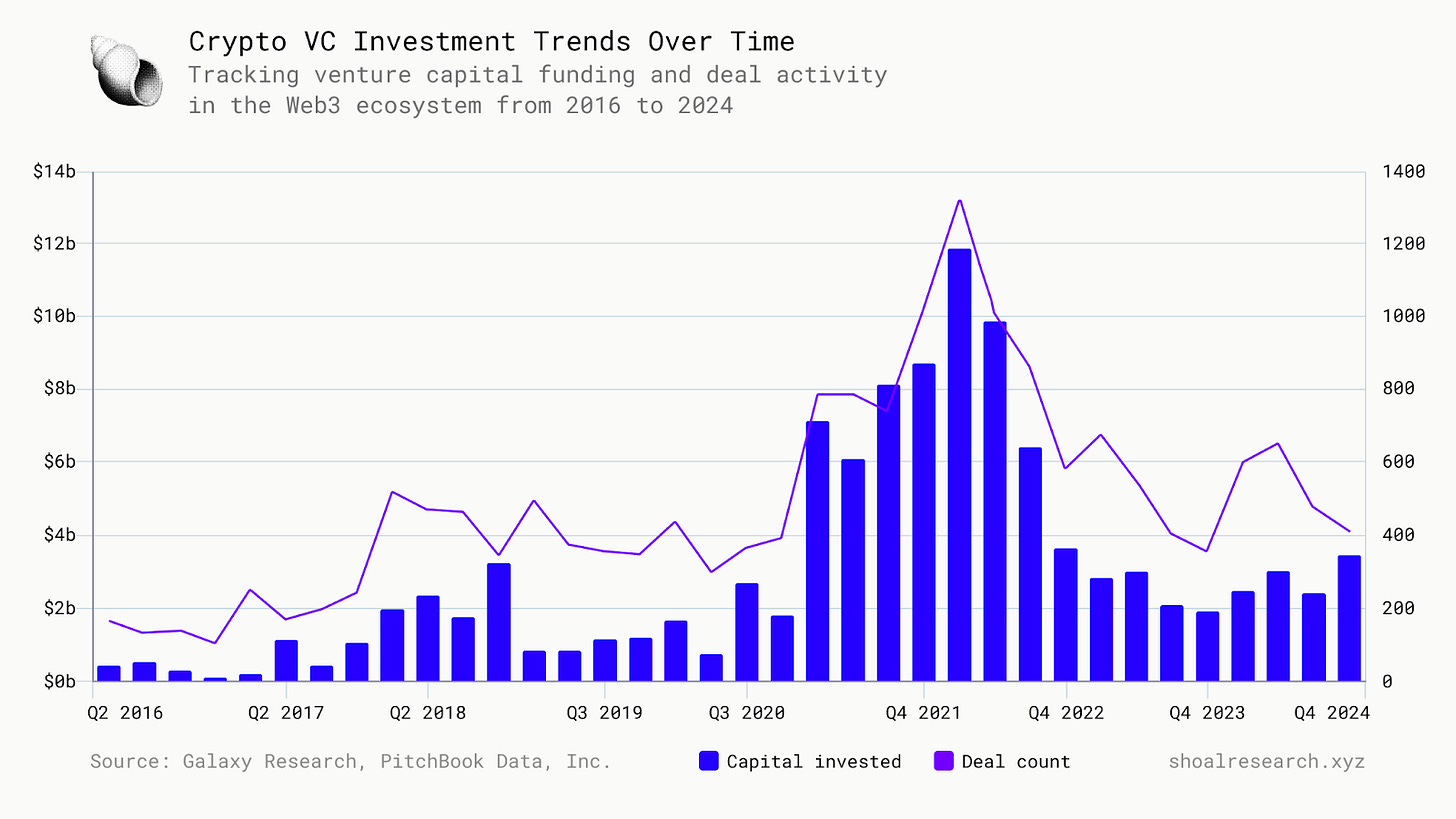 Thorn, A., & Parker, G. (2025, January 15). Crypto & Blockchain Venture Capital Q4 2024 [Research Report]. Galaxy. https://www.galaxy.com/insights/research/crypto-blockchain-venture-capital-q4-2024/.