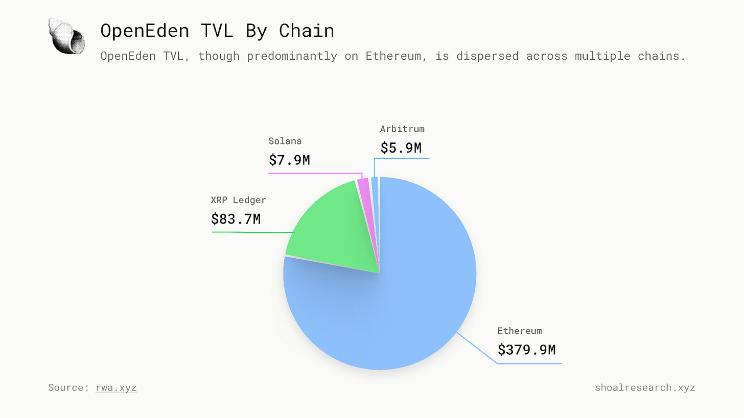 Most OpenEden assets reside on Ethereum, however, liquidity is also growing across other chains like Solana, Arbitrum, and XRPL.