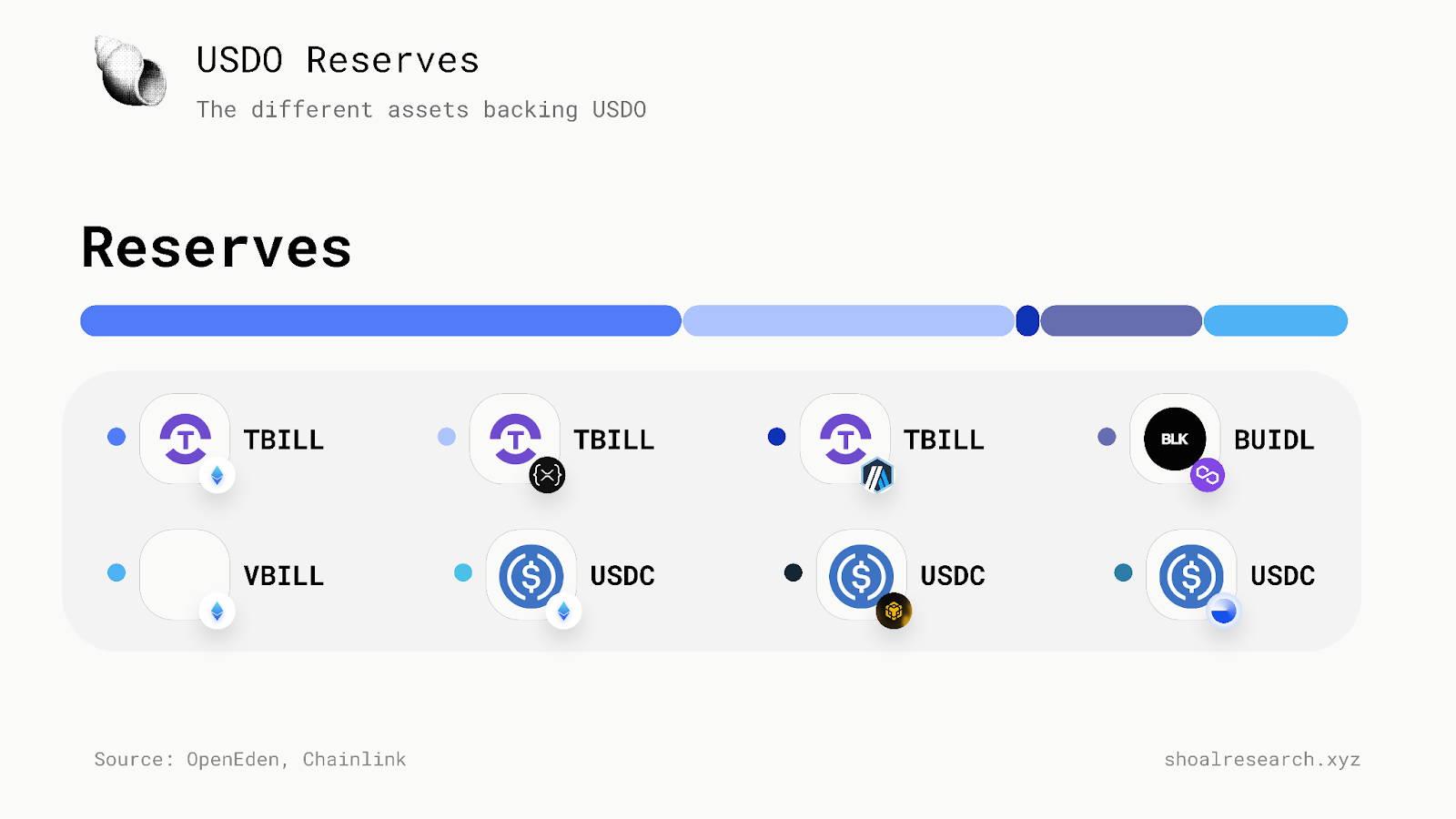 USDO is backed by a diversified pool of regulated tokenized Treasuries issued by major financial institutions: