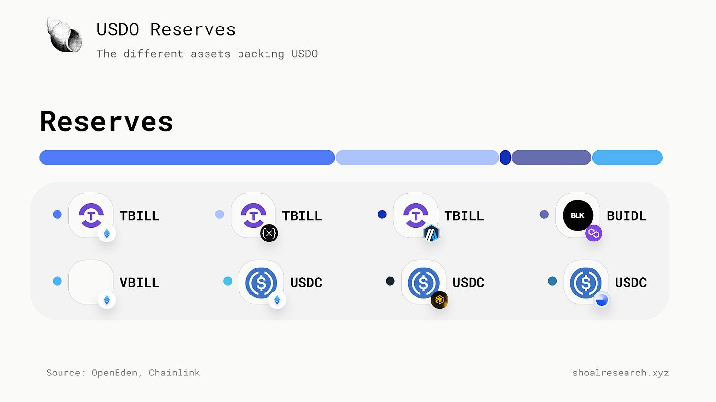 These assets are backed by short-duration U.S. Treasuries themselves. OpenEden integrates Chainlink Proof-of-Reserves for real-time, onchain verification of collateral holdings. As of the latest data, USDO reserves sit at ~273,196,076.72, with over 99 % of circulating USDO residing on Ethereum.