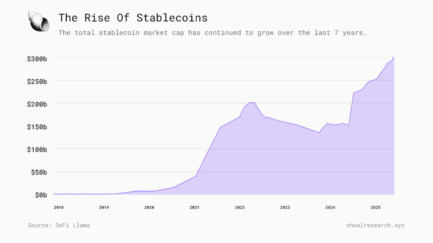 Over the past five years, stablecoin adoption has accelerated sharply. Tens of trillions of dollars in value have already moved through stablecoin rails, and supply continues to set new all-time highs.