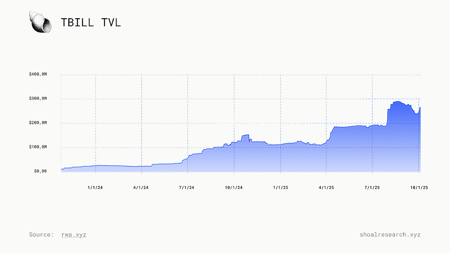 Since launch, TBILL has seen consistent growth in both deposits and fees generated. At the time of writing, TBILL TVL sits at $264M, up over 130% YTD and 2300% since launching in 2023 ($11M).