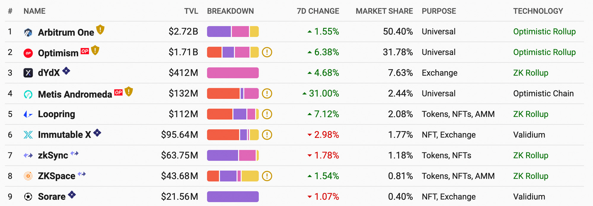 The Arbitrum ecosystem has seen considerable organic growth since its launch in 2021. Currently, it is the number one L2 with over $2B in TVL. Many talented developers are building the ecosystem with derivative exchanges, games, and other dapps. Since Arbitrum is an L2, gas is cheap, and transactions are speedy. A typical transaction might cost a few cents to execute. Cost and speed have also attracted builders, specifically in Defi. Arbitrum employs optimistic rollup technology, which requires gas payment in ETH. Some crypto exchanges, such as Coinbase, support ETH deposits and withdrawals on the Arbitrum network, making it easy for liquidity to enter the ecosystem. Over the next two years, I expect the Arbitrum ecosystem to continue to grow due to early network effects. This report outlines a few Dapps that could experience hyper-growth.